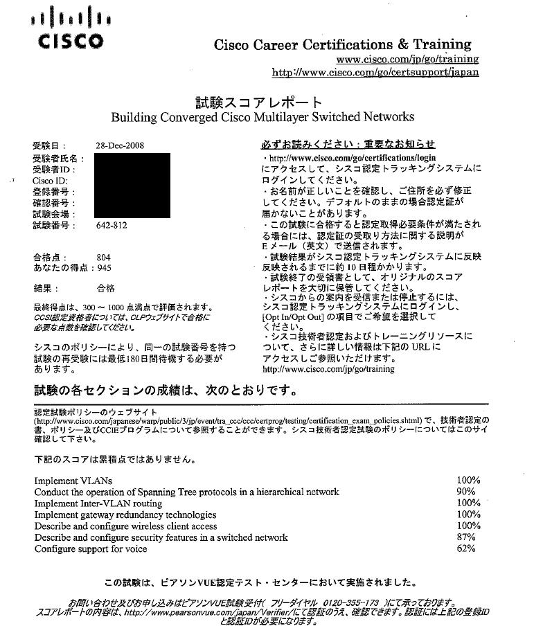 CCNPのBCMSN(642-812)に無事合格しました^^
