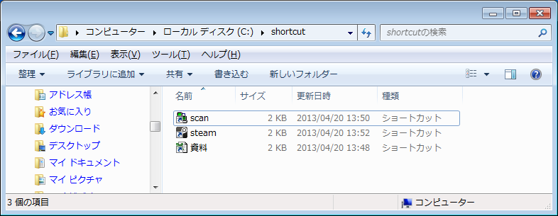 よく使用するソフトやファイルをショートカットファイルにして、一ヶ所のフォルダに集めます。