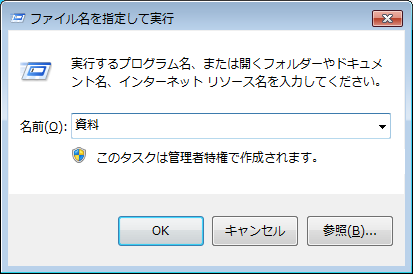 | ファイル名を指定して実行 | : | ウィンドウズキー + R |