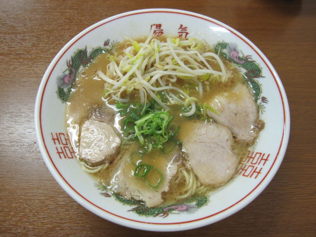 麺は細いストレート、スープは九州とんこつ系だけどしょうゆも混じってる感じ?